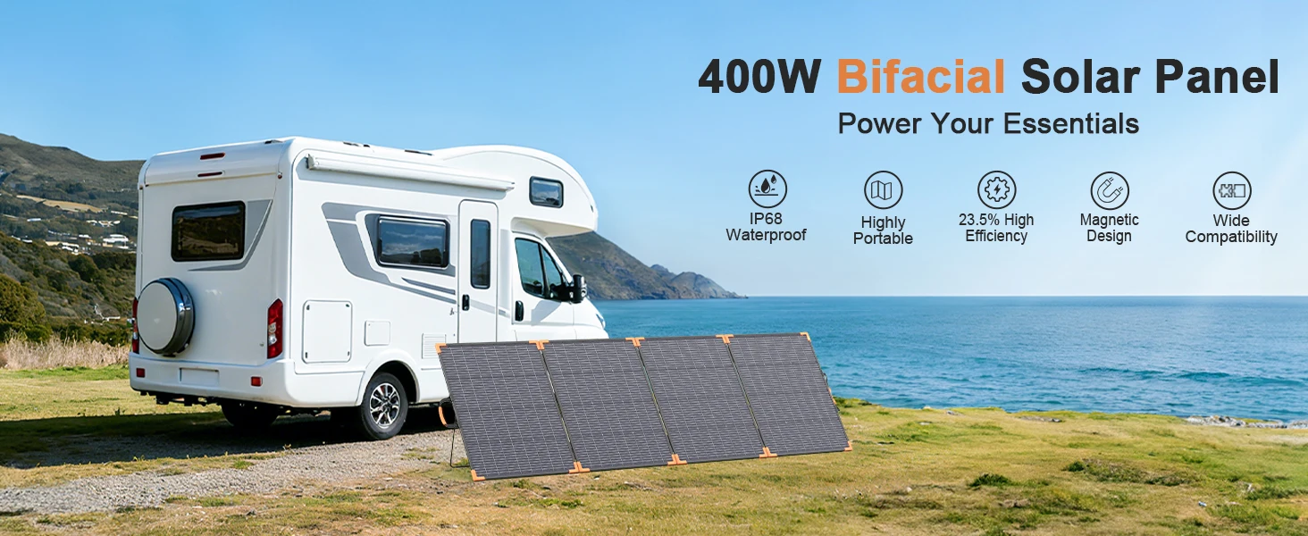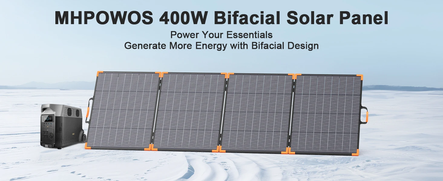MHPOWOS Foldable And Bifacial Solar Panel 400W Solar Battery Charger Outdoor Emergency Backup Power for Powerstation etc