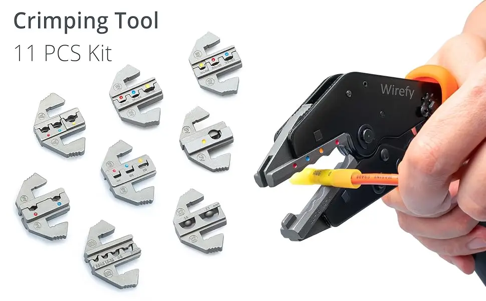 Wire Crimping Tool Kit | Crimpers & 9 Slide in Dies | Ratcheting Wire Crimper Tool | Terminal Crimp Pliers | for Heat Shrink